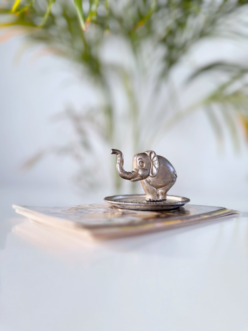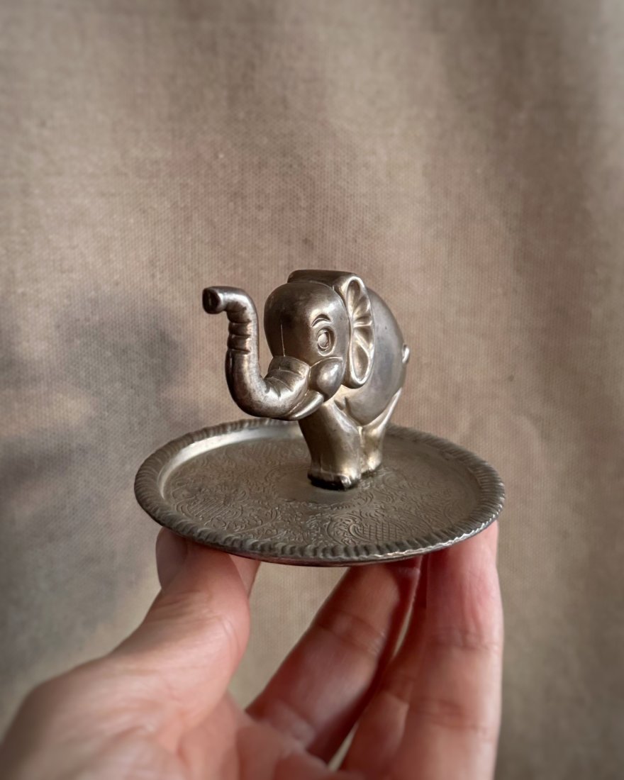 Figurka w kształcie słonia z podniesioną trąbą na podstawce. Przedmiot jest opisywany jako wieszak na pierścionki ale ze względu na swoją masę może być też używany jako przycisk do papieru lub po prostu jako dekoracja.