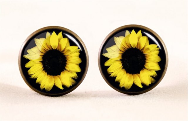 Ręcznie robione kolczyki sztyfty z wysokiej jakości grafiką pokrytą wypukłym, powiększającym szkiełkiem.