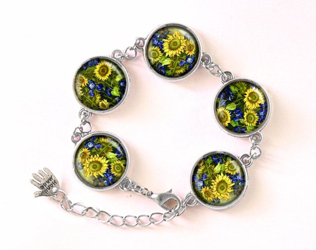 Ręcznie robiona bransoletka z wysokiej jakości grafiką pokrytą wypukłym, powiększającym szkiełkiem.