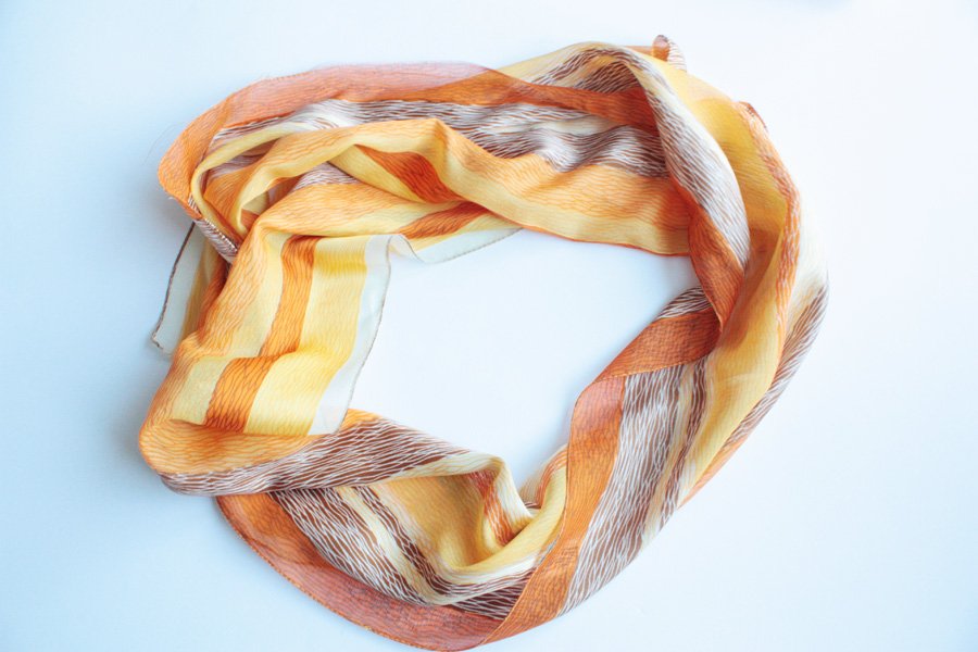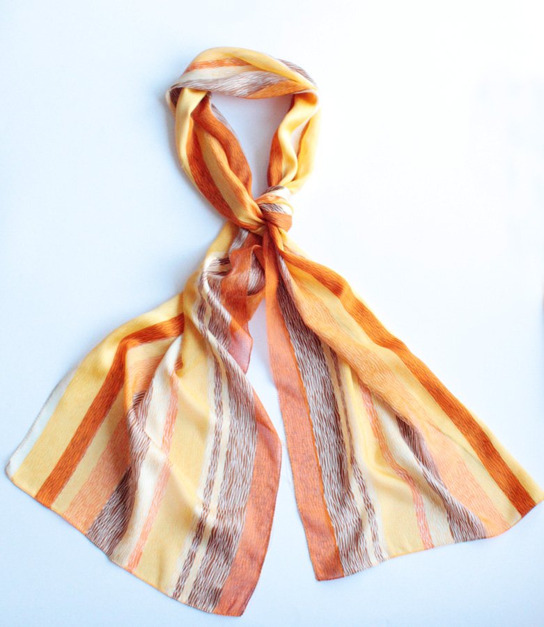 Zwiewny szal w słoneczne pasy.