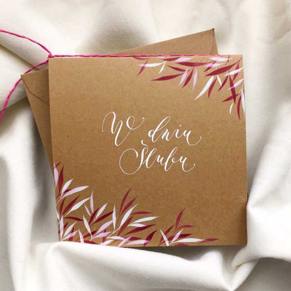 ślubna, na papierze kraft, malowane liście, kaligrafowana, oryginalna