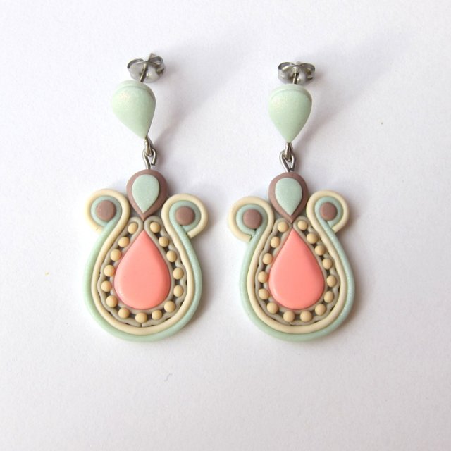 Nowoczesne awangardowe kolczyki wykonane z masy termoutwardzalnej Fimo w kolorze miętowym i neonowym różowym oraz z wysokiej jakości sztyftów ze stali. Wielkość kolczyków to ok. 4 cm. Kolczyki są lekkie i bardzo solidnie zrobione. Zobacz moją całą galerię w Decobazaar!