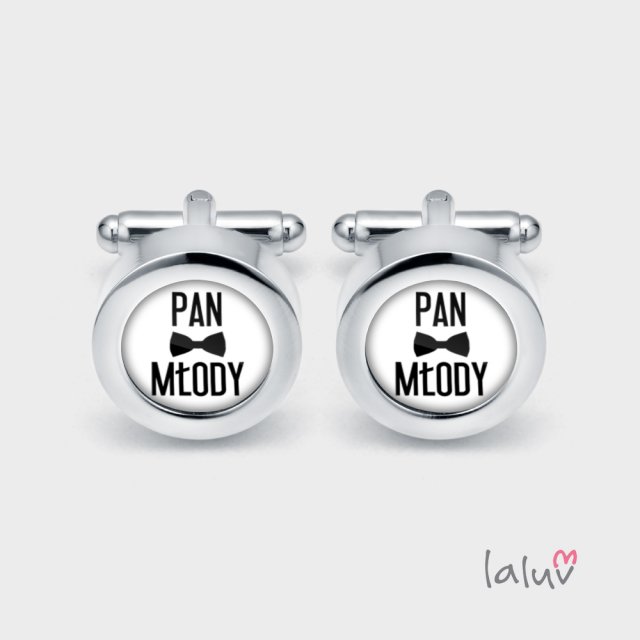 Ręcznie robione spinki do mankietów z wysokiej jakości grafiką oprawione w bazę w kolorze srebrnym.