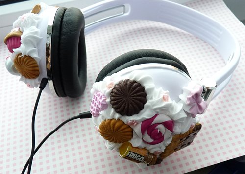 Oryginalne słuchawki firmy 4World, zdobione bitą śmietaną i słodkościami z modeliny FIMO:)