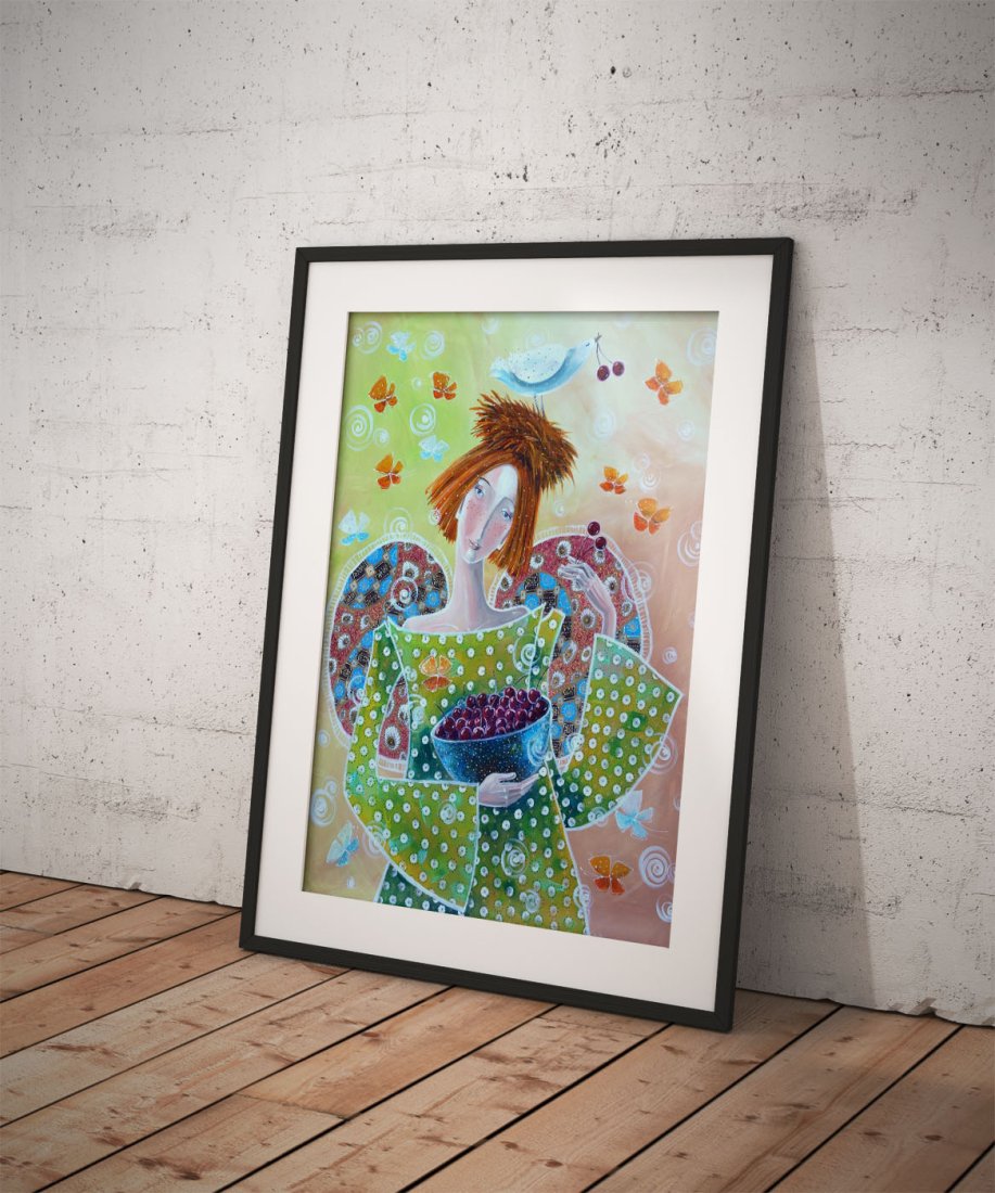 Reprodukcja pracy własnej zatytułowanej "Smak lata", wykonana na wysokiej jakości papierze satynowanym o gramaturze 200-220 g/m².