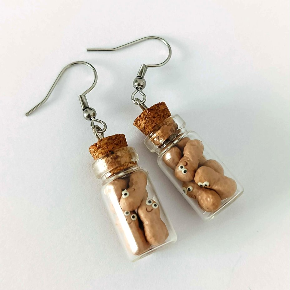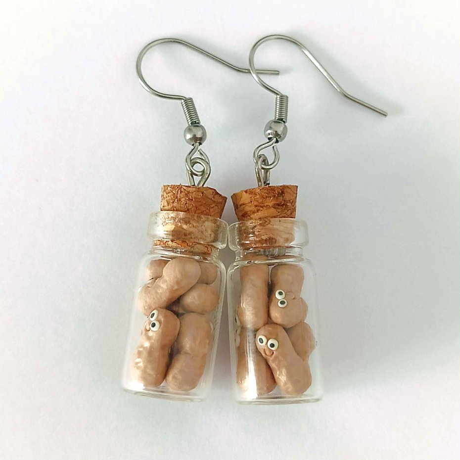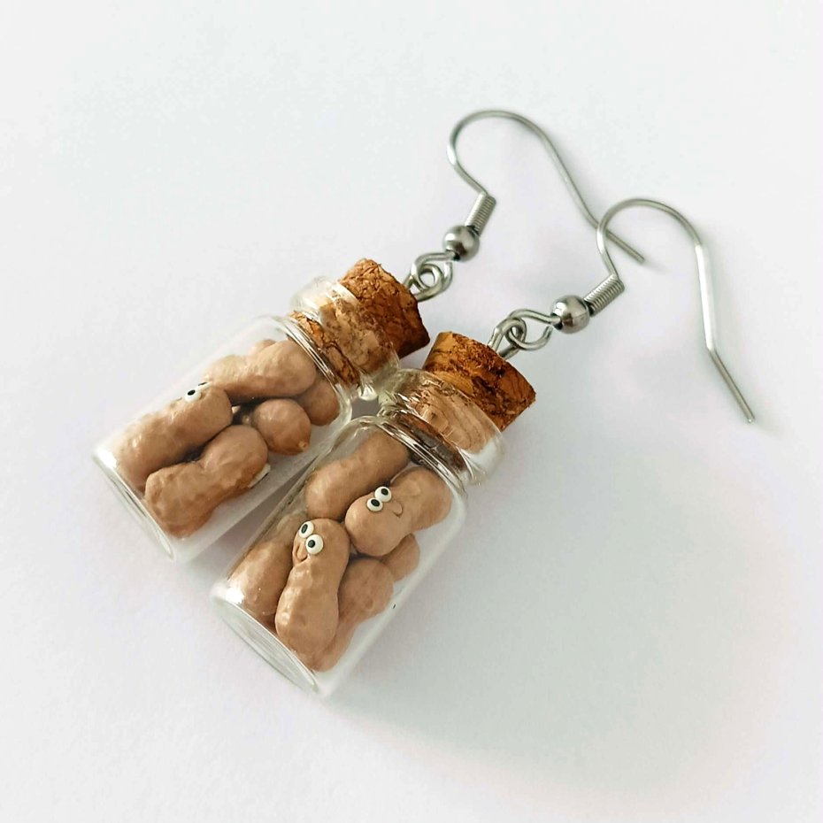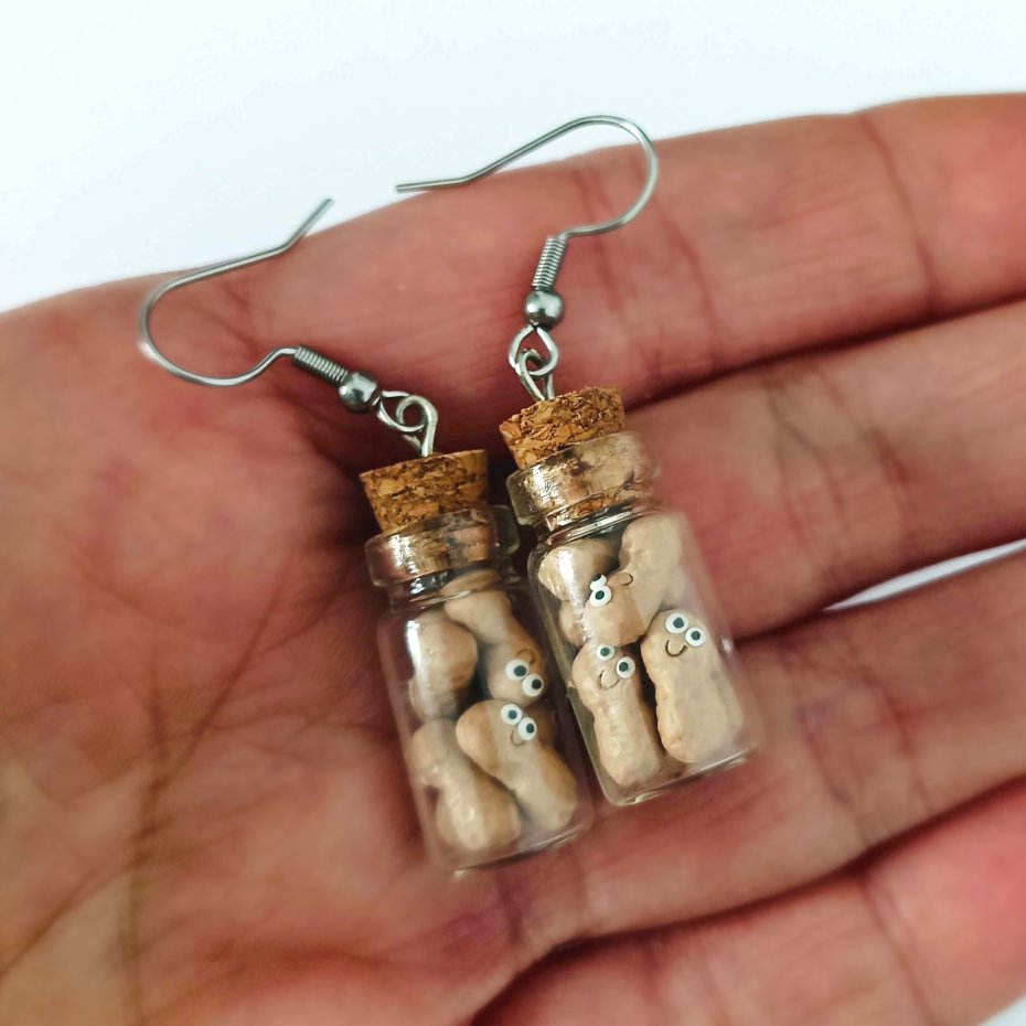 Dodaj odrobinę humoru i uroku do swojej stylizacji dzięki tym uroczym kolczykom z orzeszkami w szklanym słoiczku!