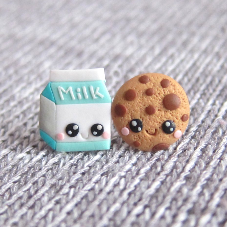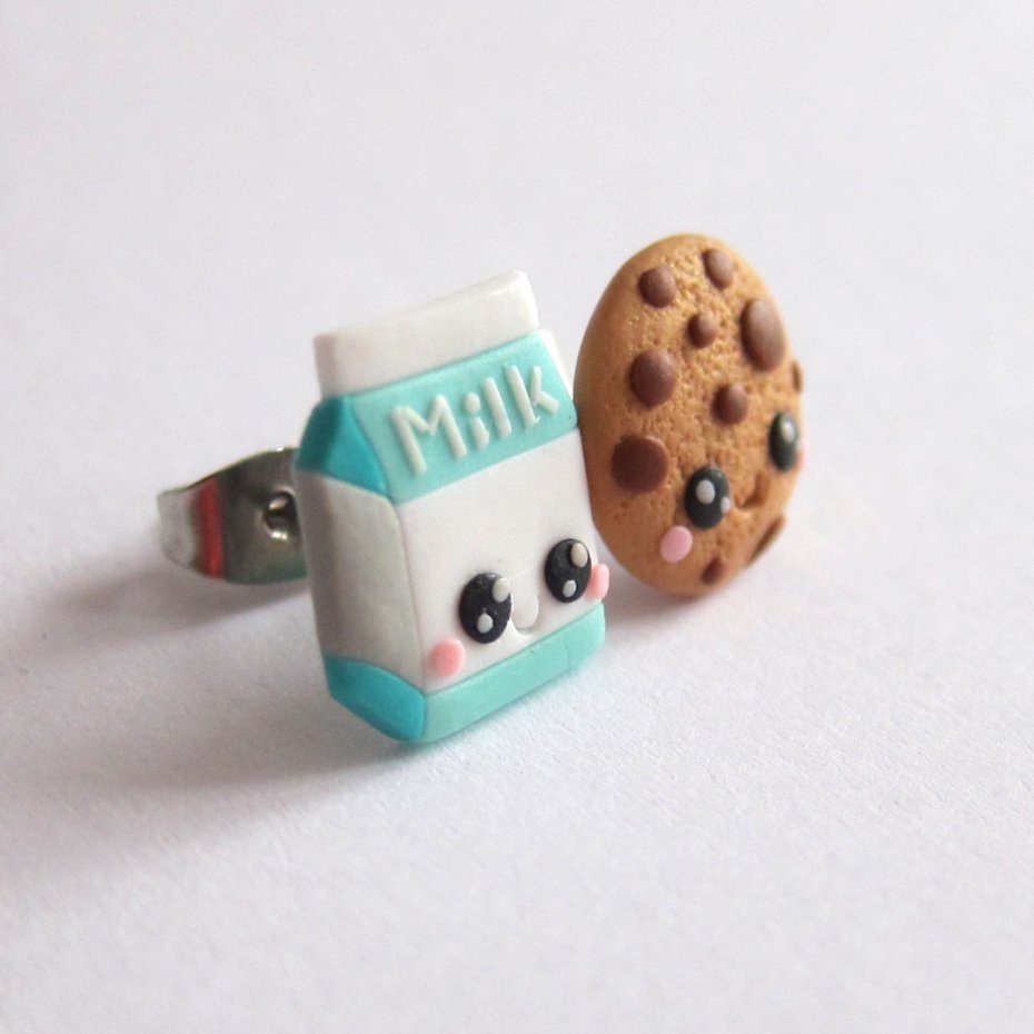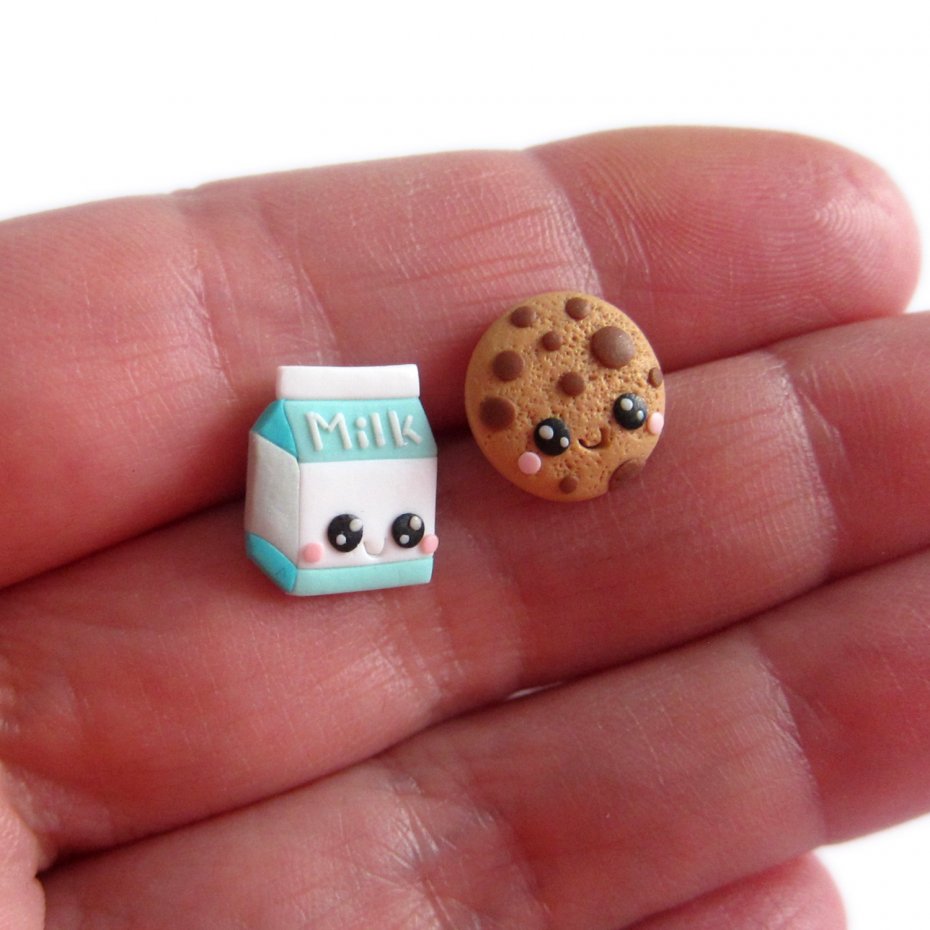 Zabawne kolorowe kolczyki wykonane ręcznie z masy termoutwardzalnej Fimo w kształcie mleka i ciasteczka. Wielkość kolczyków to ok. 1,2 cm. Sztyfty wykonane są ze stali chirurgicznej. Kolczyki świetne na prezent. Zobacz moją całą galerię w Decobazaar!