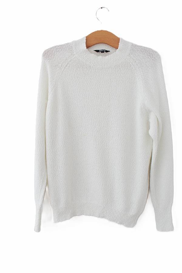Śmietankowy półgolf vintage z miękkiej, sprężystej bawełny o ciekawej strukturze.
