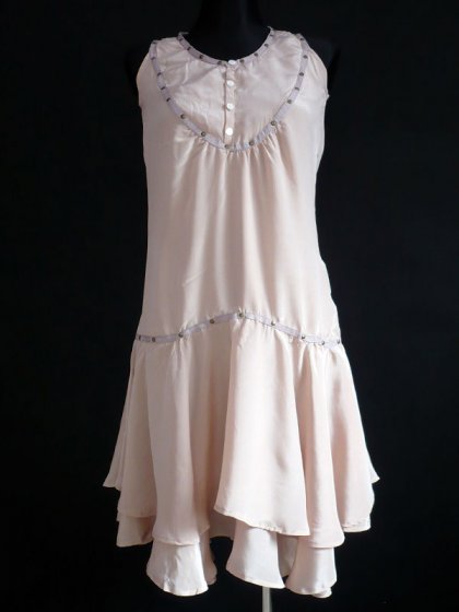 W kolorze cielistym.Uszyta z jedwabiu, podszewka z atłasu. Dekolt nabijany ćwiekami. Ozdobne logo wew.Zamek z boku.