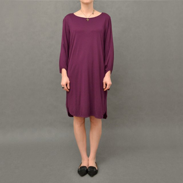 Elastyczna sukienka w kolorze pięknego fioletu. Prosta, luźniejsza, rękawki przed nadgarstek.