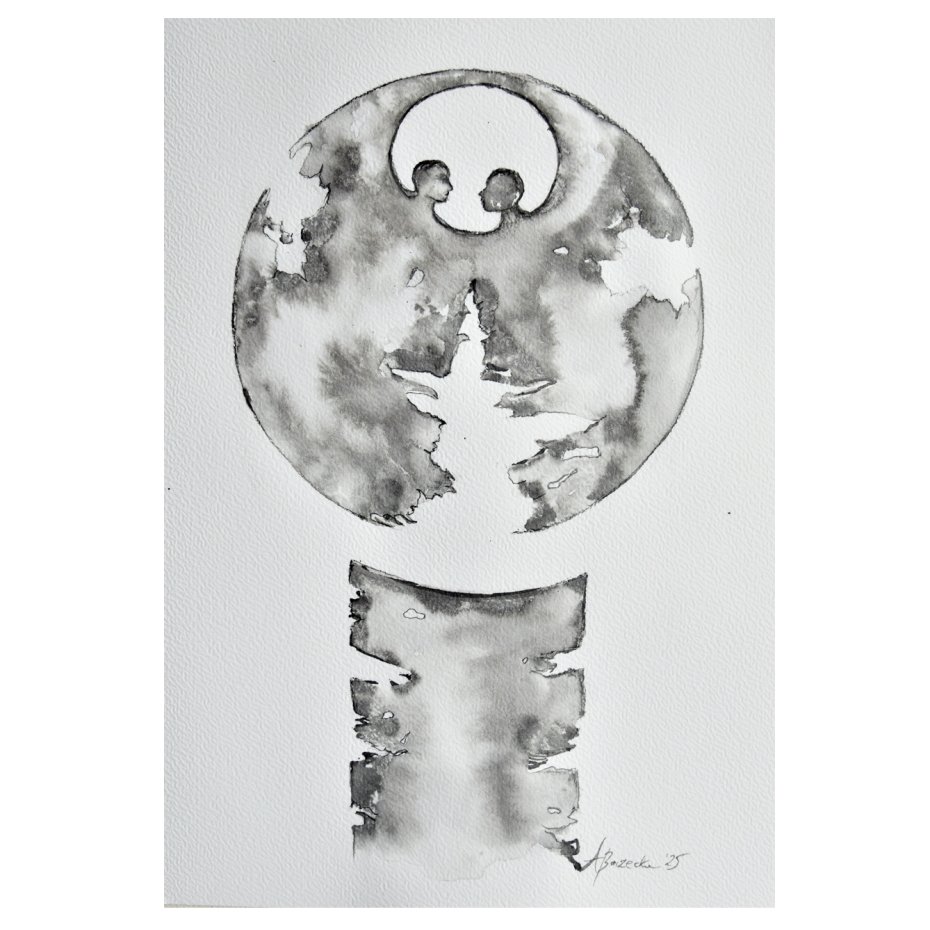 Czarno-biała grafika - oryginalny obraz malowany tuszem na papierze akwarelowym o gramaturze 300 g, w formacie A4 (ok. 20/30 cm).