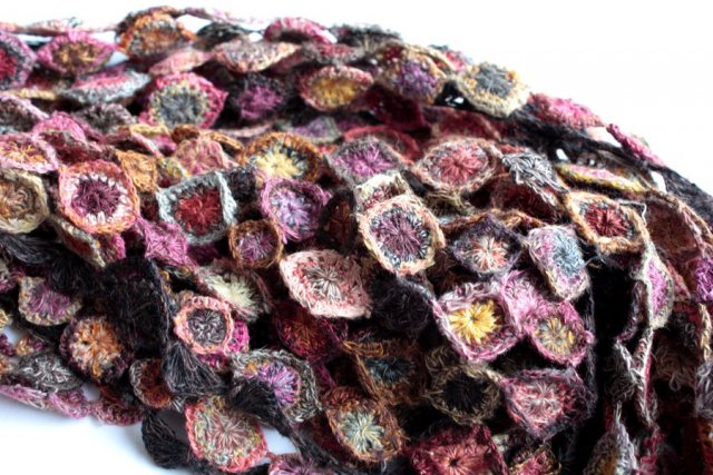 Przedstawiam Państwu ekskluzywny szal od paryskiej projektantki Sophie Digard. Szal wykonany na szydełku z lnianej nici w różnych kolorach, utrzymany w stylu charakterystycznym dla artystki. Ceny takich szali na stronie projektantki przekraczają 300 dolarów.