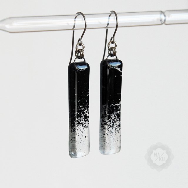 Kolczyki ze szklanymi podłużnymi oczkami wykonanymi metodą fusingu.