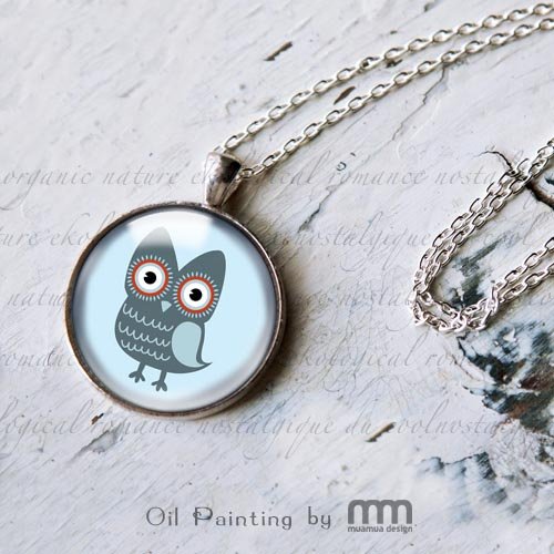 Naszyjnik SOWA to bardzo romantyczne, nostalgiczne i kobiece malutkie dzieło sztuki. Obrazek pod szkiełkiem to wesoła miniaturka graficzki opracowanej w moim studio. Grafika i naszyjnik to połączenie nowoczesności z romantycznym antycznym nastrojem.