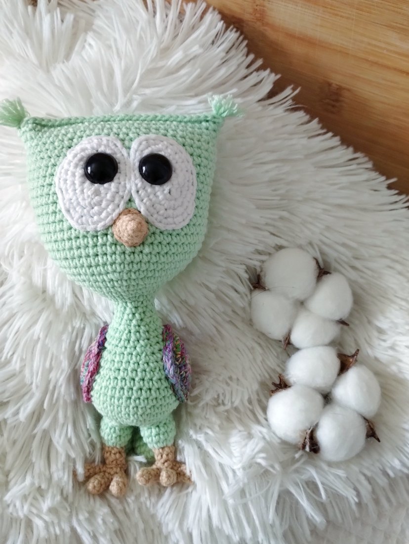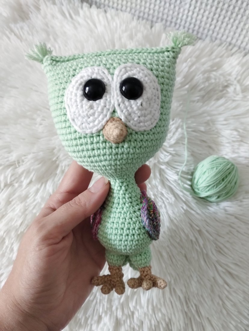 A zabawka to sówka Beata. Ma ok 18 cm wzrostu, śmieszne nóżki i wielkie oczyska - jak na sowę przystało. Będzie doskonałym towarzyszem każdej zabawy.