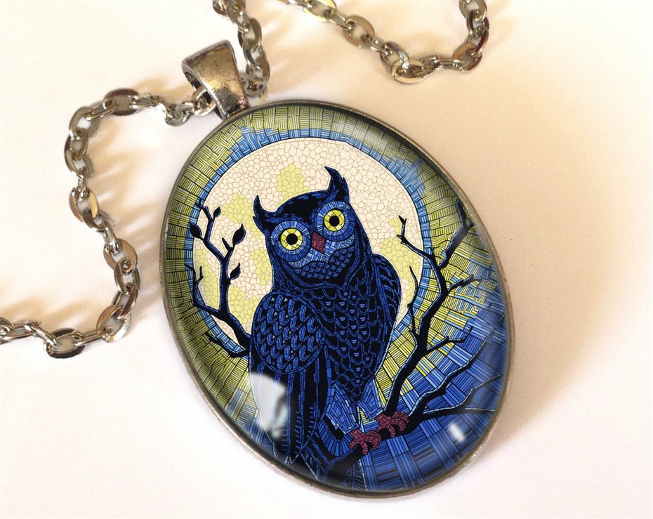 Ręcznie robiony duży owalny medalion z wysokiej jakości grafiką.