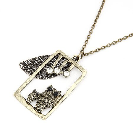 Modny naszyjnik z sowami. Metal w kolorze złotym.