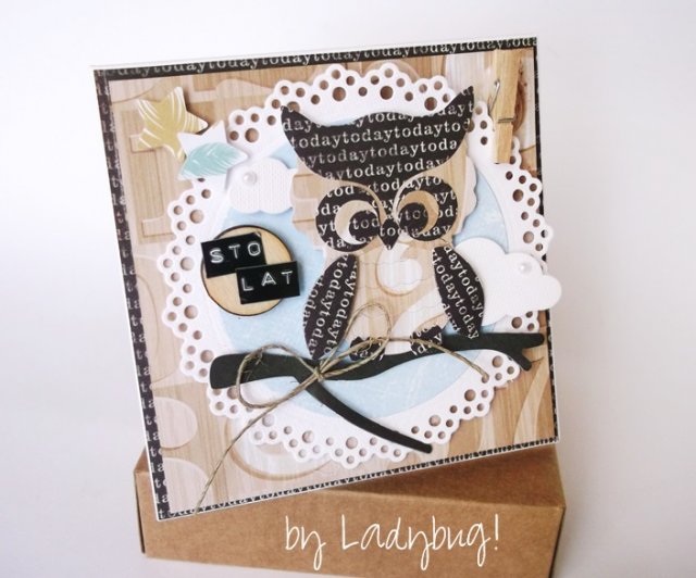 Mała karteczka 10x10cm z uroczą sową na gałęzi i życzeniami.