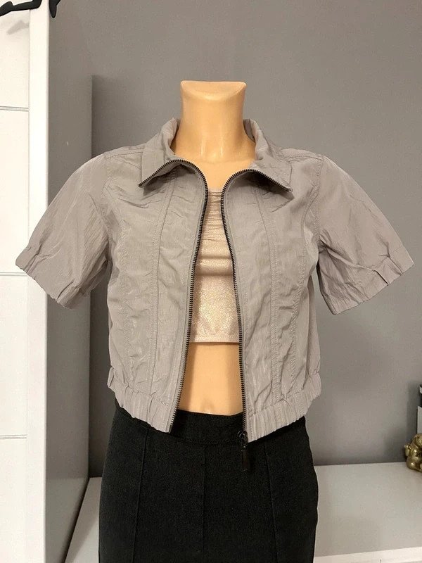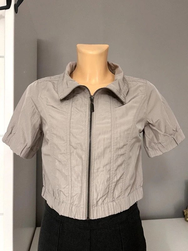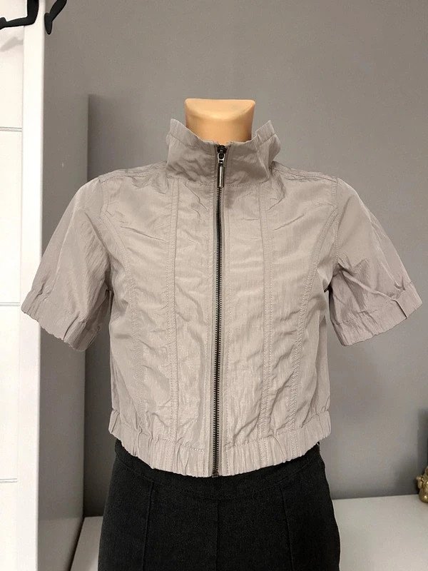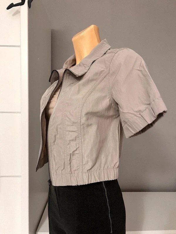 Kurtka marki Soyaconcept, nie posiada metki z rozmiarem, ale moim zdaniem to M 38. Na zdjęciach podane są wymiary, więc proszę się nimi kierować przez zakupie. Jest zasuwana na zamek, krótka i ma krótkie rękawy. Cena katalogowa to 350 zł.