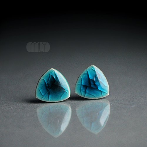 Ceramiczne kolczyki w formie sztyftów, ręcznie wykonane z delikatnej gliny kamionkowej, jednostronnie szkliwione mieszanką turkusowo błękitnych szkliw z efektem plamek i subtelnym połyskiem, na antyalergicznych sztyftach w kolorze srebrnym.Średnica ok. 10mm.. Polecam. Termin realizacji zamówienia to 1-2 dni.