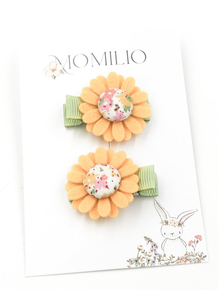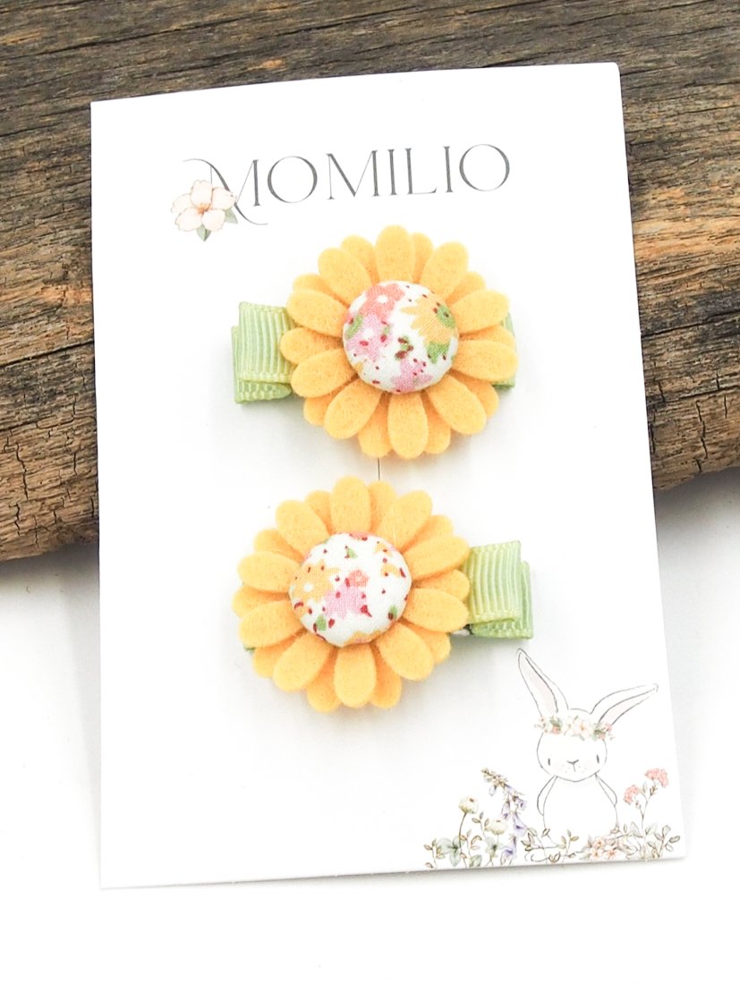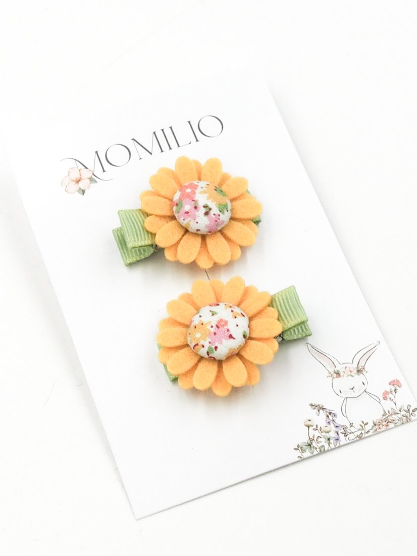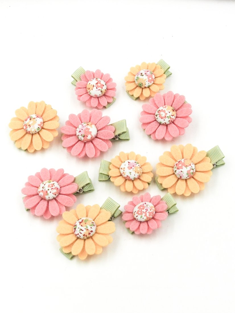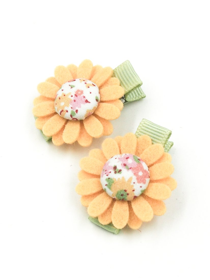 Zestaw dwóch spinek do włosów z filcowymi kwiatami. Dla małej dziewczynki na pierwsze lub cienkie włoski.