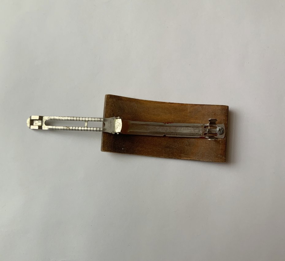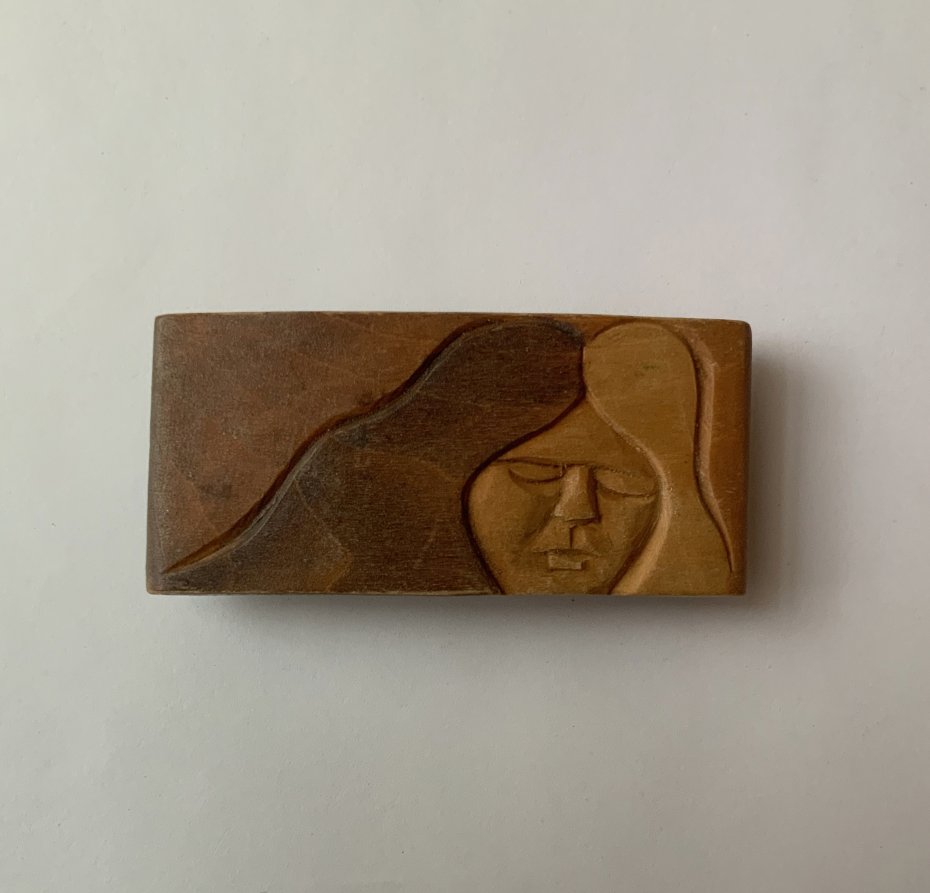 Oryginalna drewniana spinka do włosów z płaskorzeźbą.