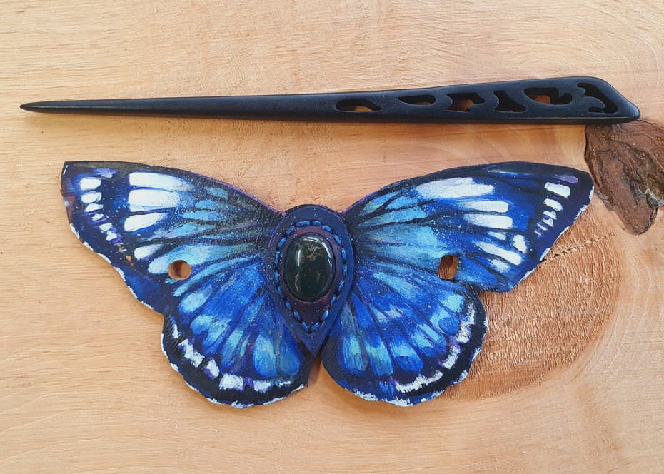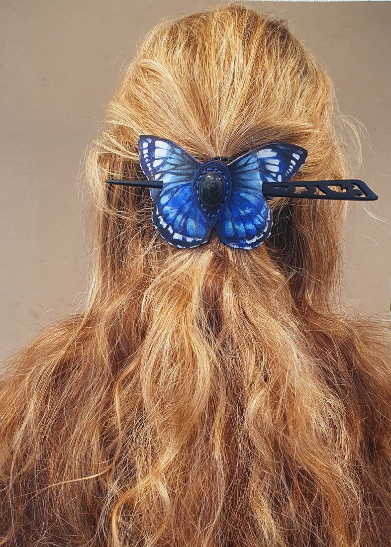 Tagi: #ozdoba na długie włosy, #ręcznie malowane, #skóra naturalna, #spinka motyl