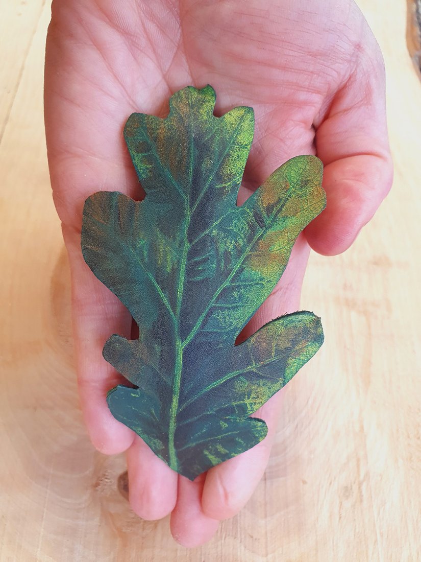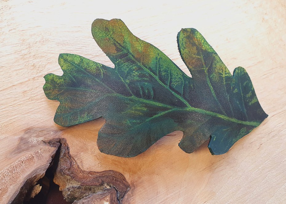 Liść barwiony jest farbami do skór (niezmywalnymi)