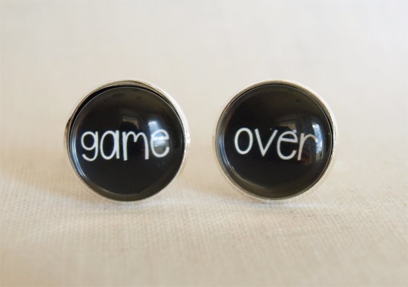 Spinki do mankietów w kolorze srebra z bardzo ciekawą grafiką, przykrytą szklanym kaboszonem. Zapakowane w śliczne pudełko. Idealne na prezent!