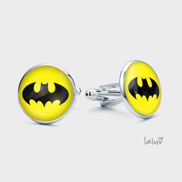 Ręcznie robione spinki do mankietów z wysokiej jakości grafiką zamkniętą pod wypukłym szkiełkiem i oprawione w bazę w kolorze srebrnym.