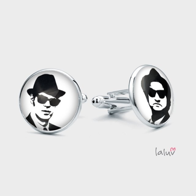 Ręcznie robione spinki do mankietów z wysokiej jakości grafiką zamkniętą pod wypukłym szkiełkiem i oprawione w bazę w kolorze srebrnym.