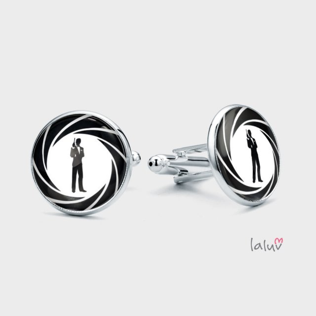 Ręcznie robione spinki do mankietów z wysokiej jakości grafiką zamkniętą pod wypukłym szkiełkiem i oprawione w bazę w kolorze srebrnym.
