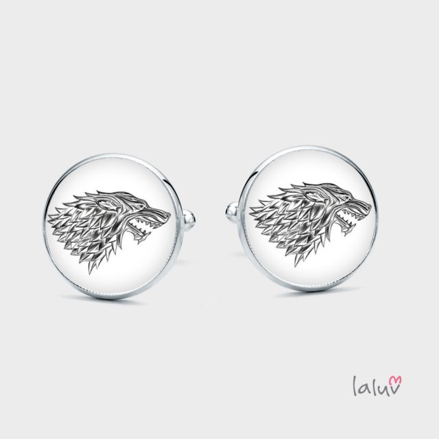 Ręcznie robione spinki do mankietów z wysokiej jakości grafiką zamkniętą pod wypukłym szkiełkiem i oprawione w bazę w kolorze srebrnym.