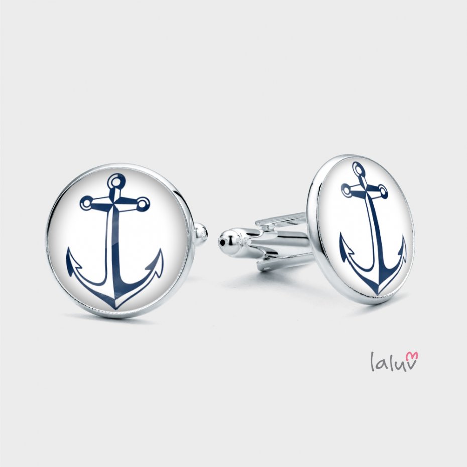Ręcznie robione spinki do mankietów z wysokiej jakości grafiką zamkniętą pod wypukłym szkiełkiem i oprawione w bazę w kolorze srebrnym.