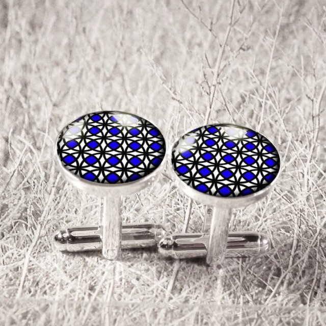 Unikatowe, ręcznie wykonane, modne spinki do mankietów z najwyższej jakości grafiką artystyczną zatopioną pod wypukłym szkłem, które grafice nadaje efektu głębi. Oprawa szkła posrebrzana.