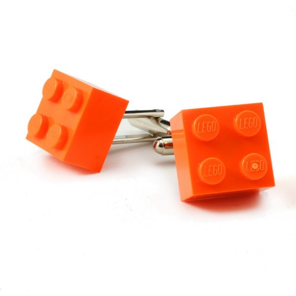 Spinki do mankietów - pomarańczowe. Wykonane z nowych klocków LEGO® w niepospolitym kolorze. Wymiary 1,55 x 1,55 x 1,2 cm. Wysokiej jakości klasyczne zapięcie obrotowe.