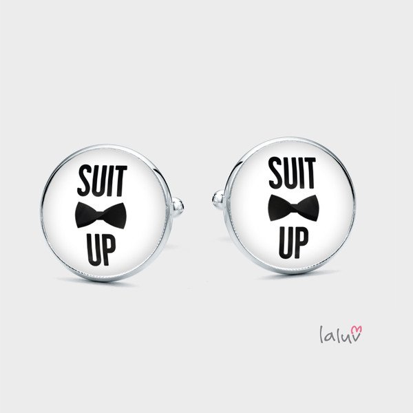 Ręcznie robione spinki do mankietów z wysokiej jakości grafiką zamkniętą pod wypukłym szkiełkiem i oprawione w bazę w kolorze srebrnym.