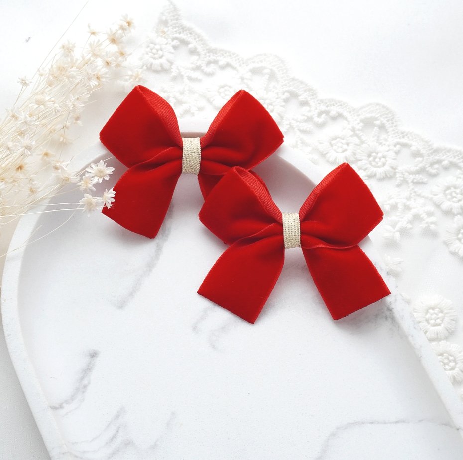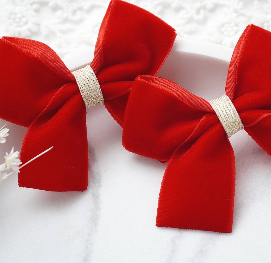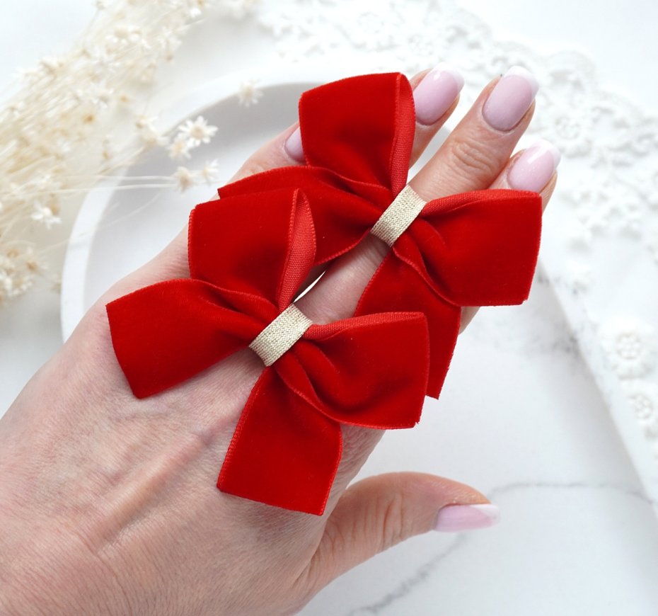 Spinki do włosów świąteczne kokardki czerwone WELUROWE SW11