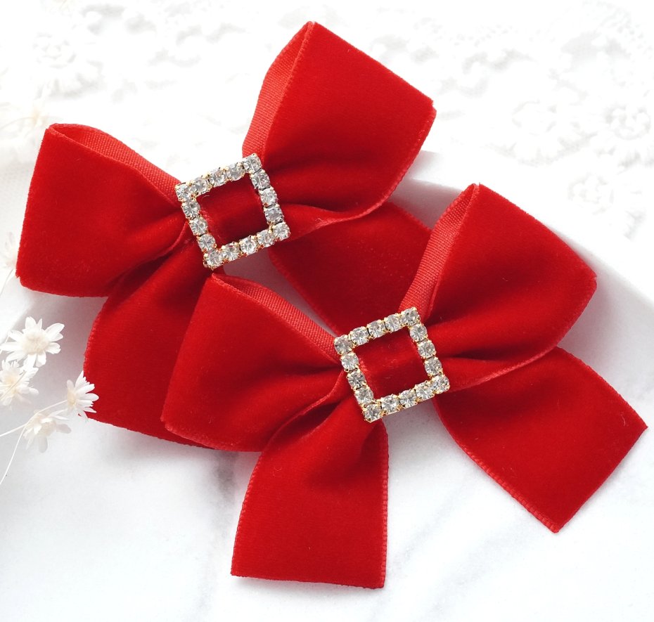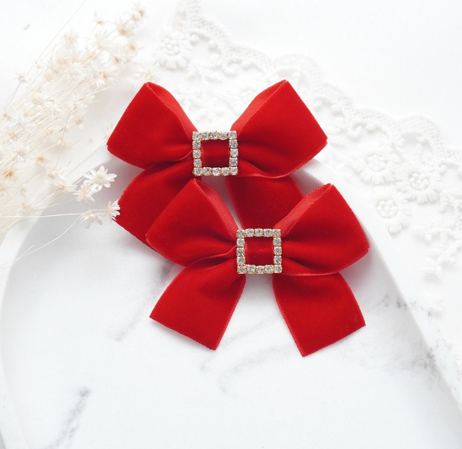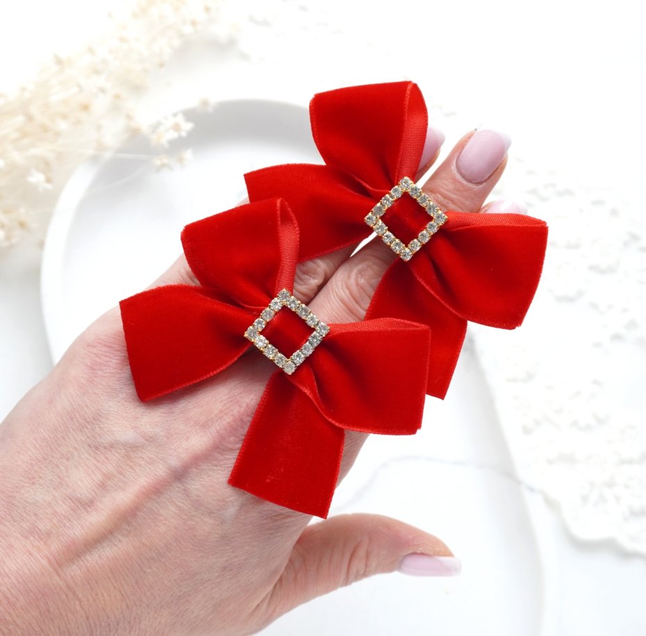Spinki do włosów świąteczne kokardki czerwone WELUROWE z cyrkoniami SW12