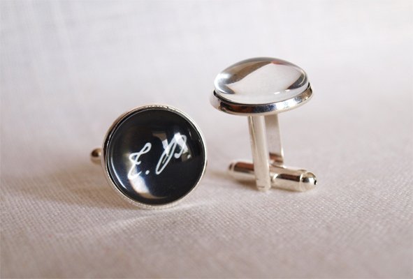 Spinki do mankietów w kolorze srebra z bardzo ciekawą grafiką, przykrytą szklanym kaboszonem. Zapakowane w śliczne pudełko. Idealne na prezent!
