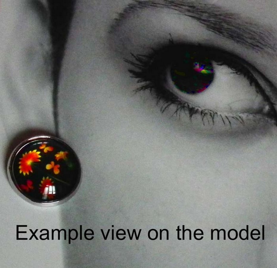 Delikatne, śliczne kolczyki na sztyfcie ( wkrętki) z unikatową grafiką,zatopioną pod wypukłym szkiełkiem i oprawioną w hipoalergiczną bazę w kolorze srebra. Grafika jest najwyższej jakości, wyraźna i nasycona. Oryginalne kaboszony wykonane ręcznie według mojego projektu i przeze mnie, z dbałością o każdy detal.