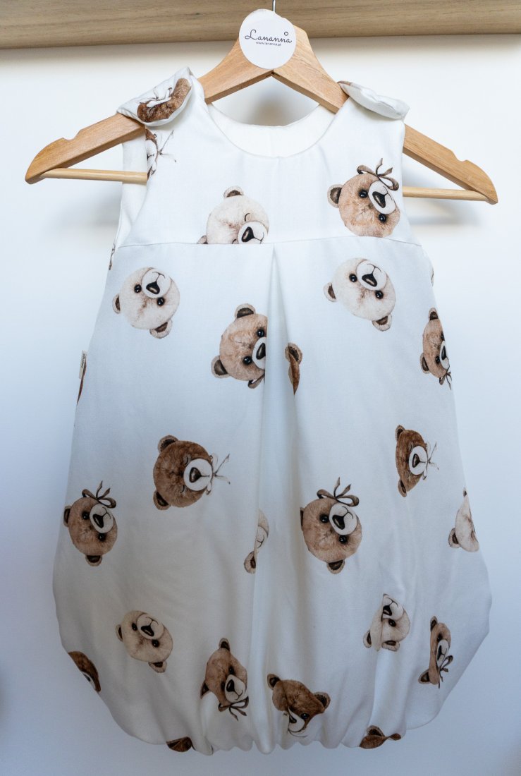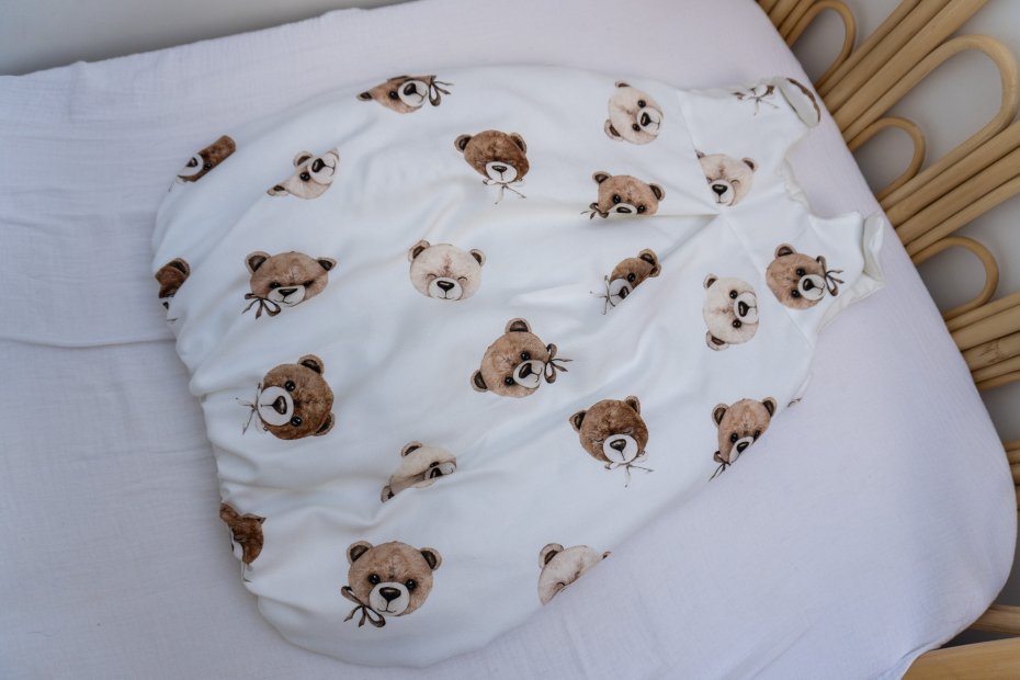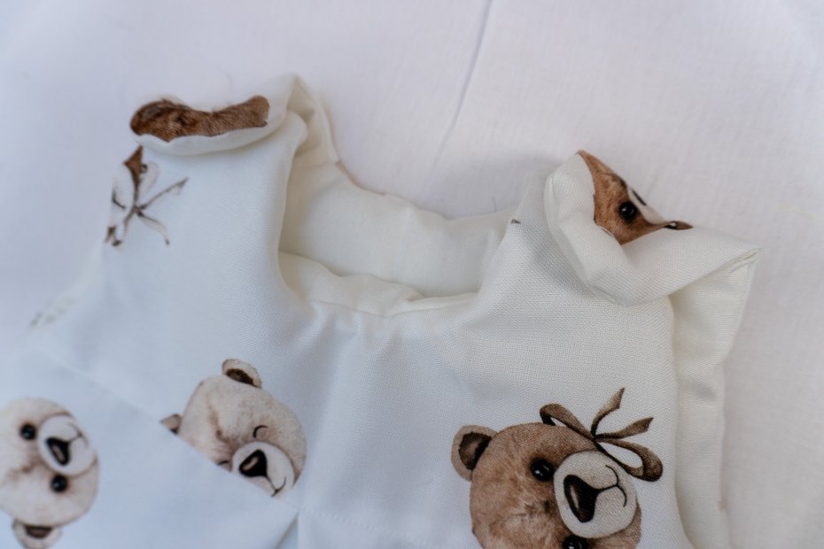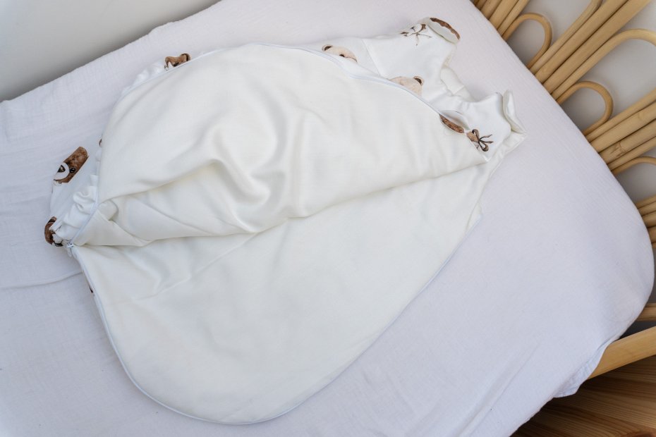 Śpiworek wykonany z 100% bambusowej z nadrukiem, środek 100% bambus jednokolorowy. Antyalergiczne wypełnienie w środku śpiworka jest zszyte razem z tkaniną,