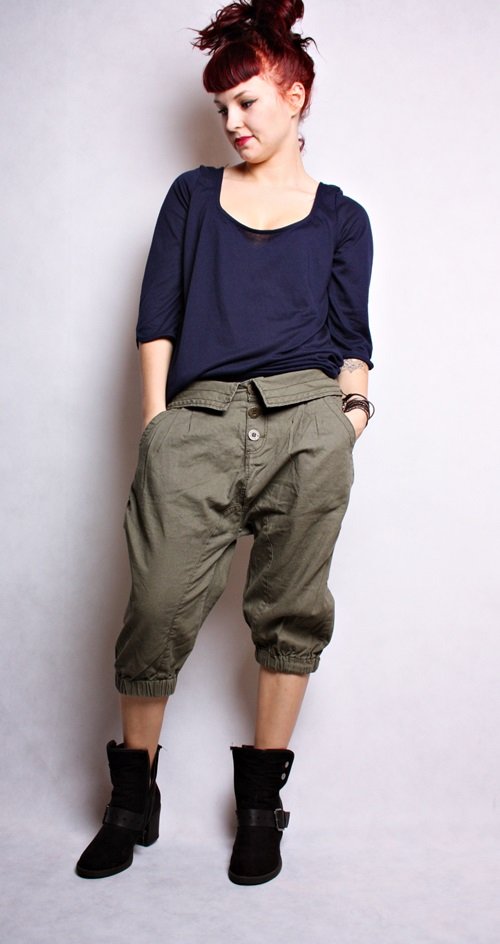 Spodenki za kolano,zgniła zieleń,stan bardzo dobry,rozm XS,osoba na zdj.nosi rozm.S