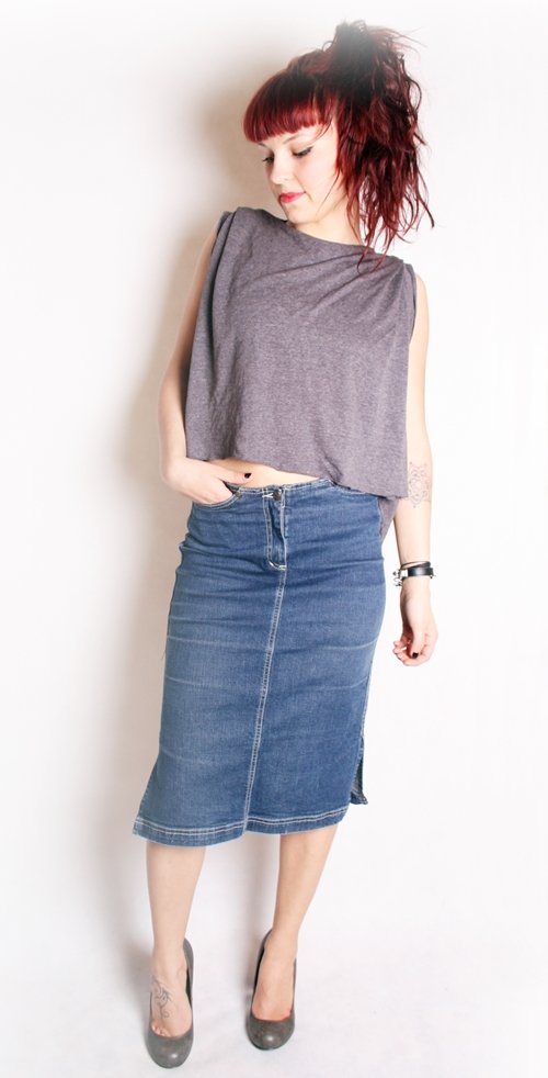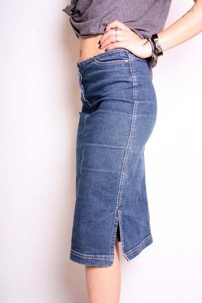 Dżinsowa spódniczka firmy bershka, rozmiar z metki 34 , ale moim zdaniem to bardziej 36.