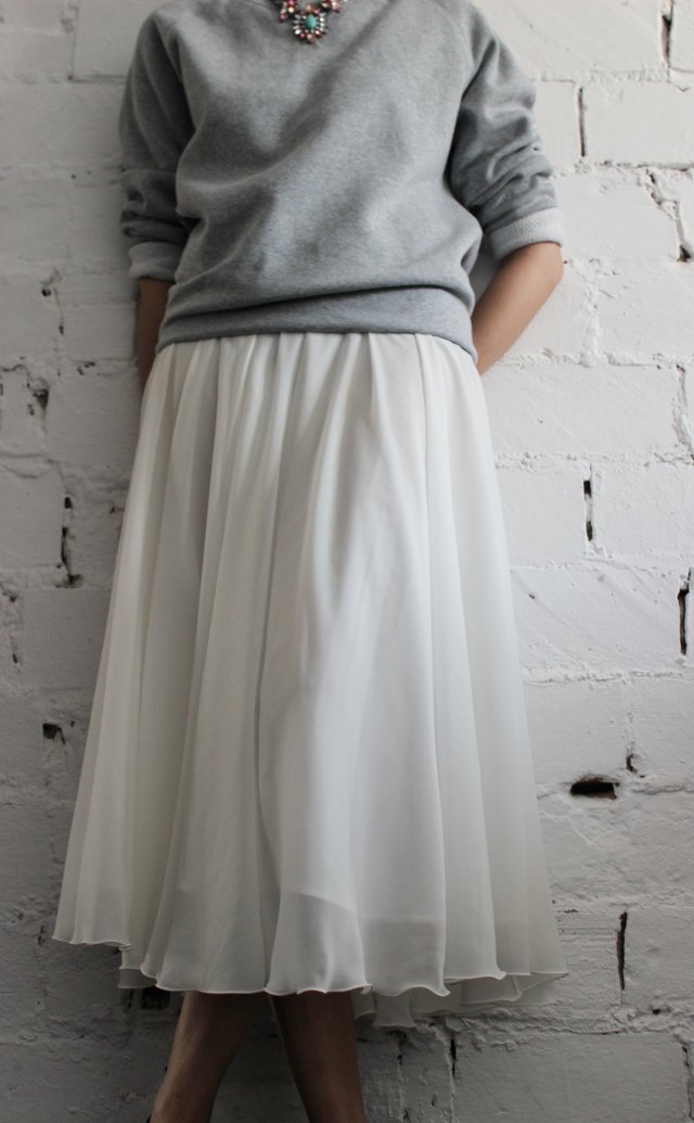 Piękna zwiewna biała spódnica na podszewce. Rozmiar 42/XL. Wymiary: obwód pasa-41cmx2 (regulacja gumką), obwód bioder-75cmx2, długość-83cm.