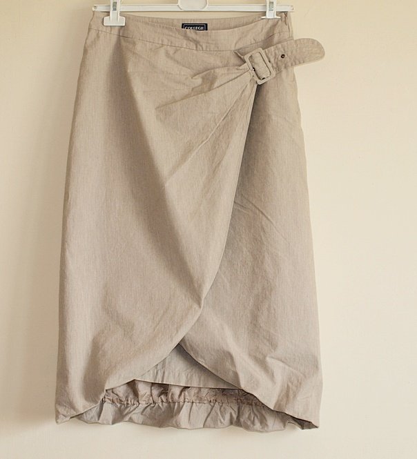 Spódnica 100% bawełna marki College clasic. Przód zakładany, drapowany z boku, krótszy od tyłu, dół połączony z podszewką w formie bombki. Zamek z boku. Stan bardzo dobry. Rozmiar z metki 38. Podaję wymiary mierzone na płasko;