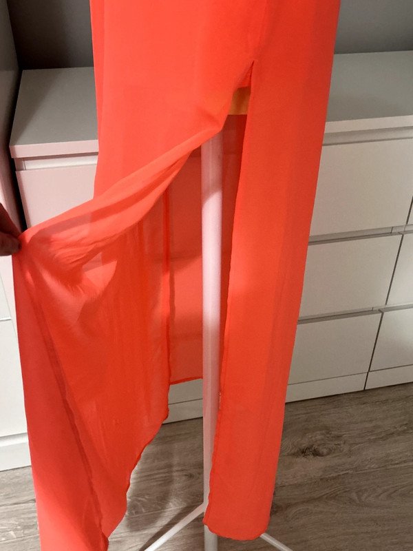 Spódniczka Długa Maxi firmy h&m divided. Kolor różowy rozmiar 36 S, rozcięcia po bokach. Wymiary podaje mierzone na płasko: pas około 32 cm( rozciąga się do 45 cm), biodra około 53 cm, długość całkowita około 101 cm. Spódniczka posiada halkę.