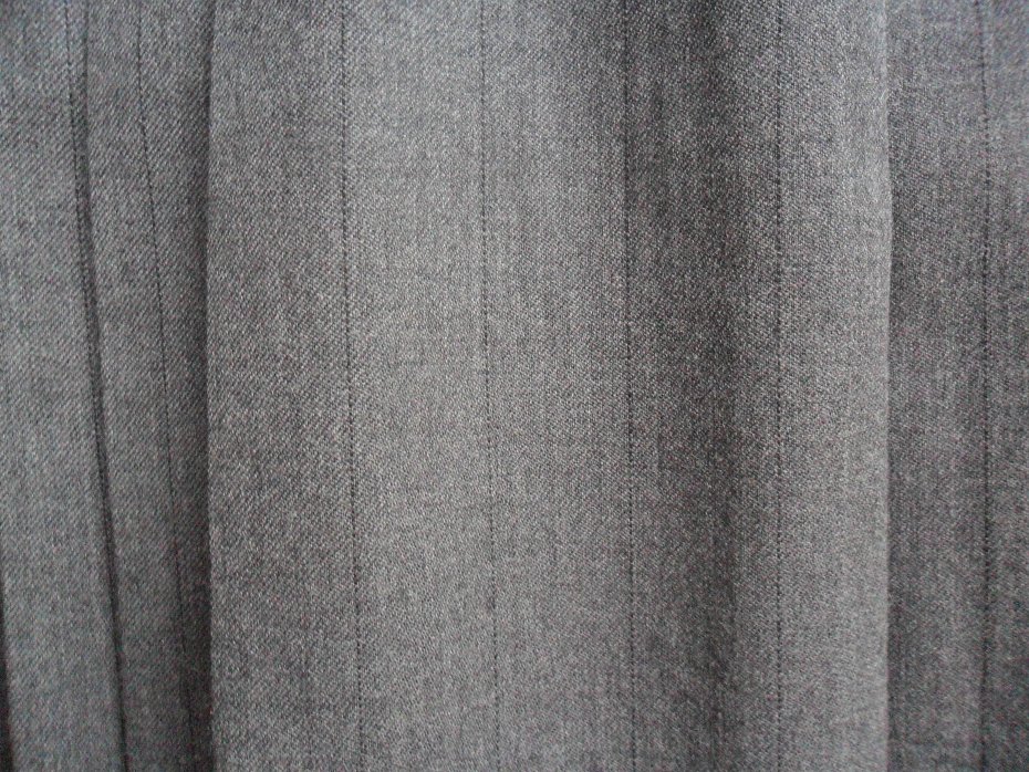 Wełniana, plisowana, grafitowa spódnica w cienkie, czarne paski. Uszyta przez krawcową z dbałością o wszystkie detale. Z boku zapinana na suwak i guzik. Na podszewce.