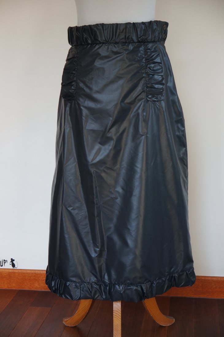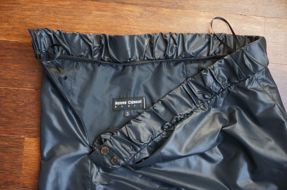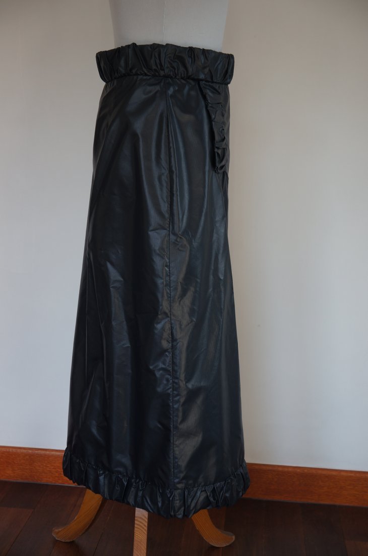Spódnica szwajcarskiej marki Helene Clement. Oryginalna, elegancka w kolorze czarnym. Ozdobne marszczenia w talii, dole spódnicy i przy kieszeni. Zapinana na kryty suwak i dwa guziki. Szeroki pasek - 5,5 cm. Z przodu kieszeń typu “kangurek". Tkanina 100% polyester. Stan bardzo dobry.
