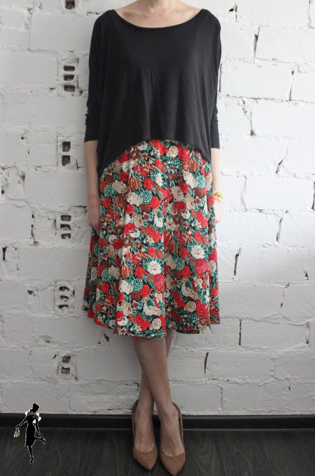 Spódnica w kwiaty. Rozmiar 38/M. Wymiary: obwód pasa-38cmx2, obwód bioder-70cmx2, długość spódnicy-67cm. Brak metki ze składem materiału.
